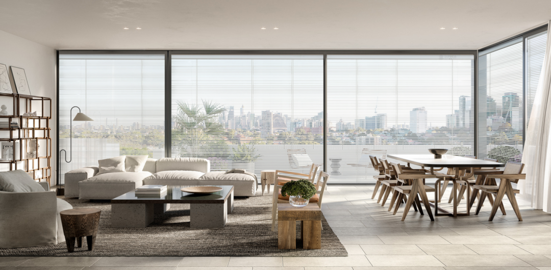 门窗中置遮阳:通常用于居住建筑,产品标准化程度高,更注重采光、隔音与操作的便捷性。